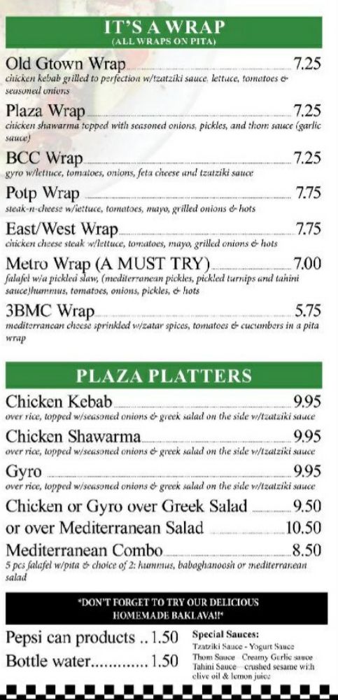 Pita On The plaza Menu